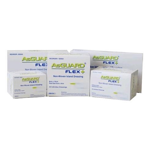 AsGUARD® FLEX + Non-Woven Island Dressings combine an absorbent pad with a soft and comfortable non-woven adhesive backing.