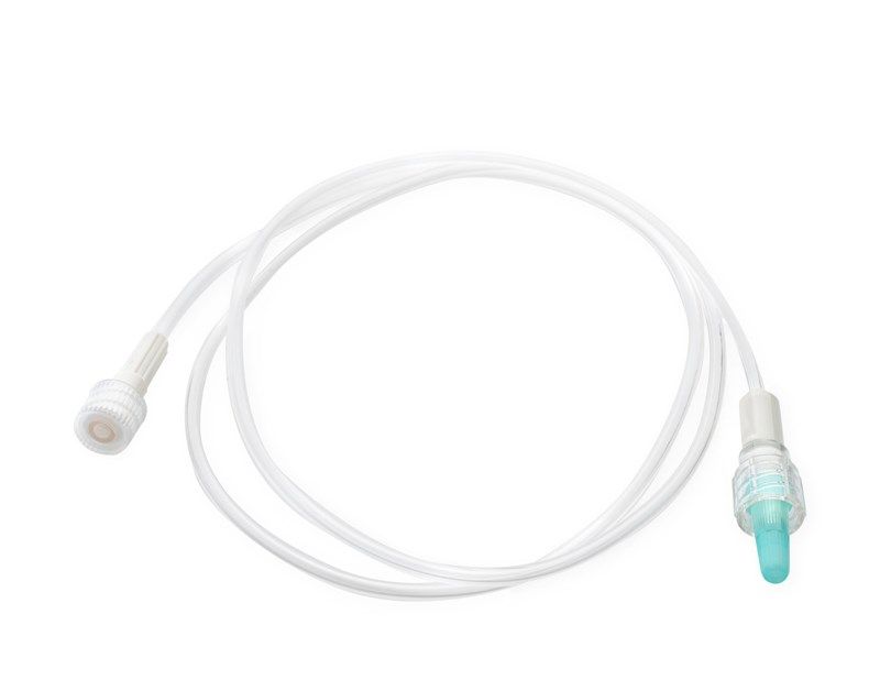 Highly flexible and kink resistant tubing minimizes disruption to the flow of fluids. The rotating hub prevents the tube from coiling up when connecting between a device and the IC access point. With a luer lock on one end and a slip tip at the other, the extension set can easily be connected to an infusion set, syringe or three-way stopcock.
