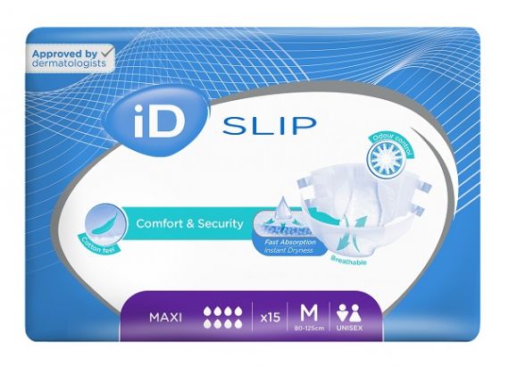iD Slip Maxi incontinence briefs are ideal for people with limited mobility with heavy urinary incontinence and who experience loss of bladder control. The iD Slips have high levels of absorption, odour control and anti-leak barriers which gives you total security and comfort. The tabs on either side make the slip easy to apply for you or your carer.
