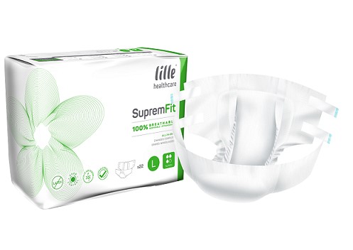 Lille Suprem Fit Super Plus all-in-one slip is a effective solution for moderate to heavy urinary incontinence, the disposable incontinence pads have high absorption levels, Anti-Leakage protection and optimal comfort. The adjustable four tapes gives you flexibility to increase comfort and support. The Suprem Fit incontinence pad is recommended for male and females with limited mobility who are confined to bed.