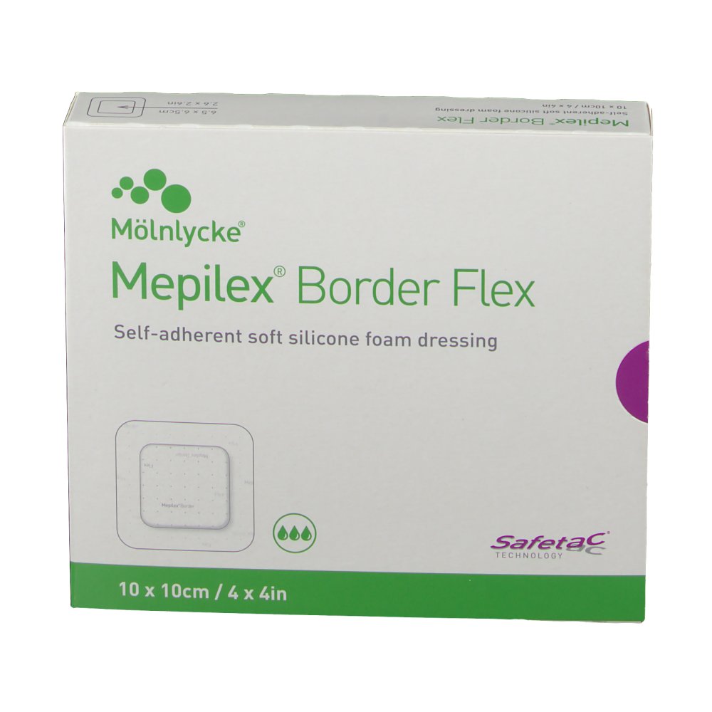 Mepilex® Border Flex with proprietary Flex Technology is an all-in-one wound dressing with improved conformability and stay-on-ability. It manages exudate containing bacteria, trapping it in a more effective way. It is designed to treat a wide range of exuding chronic and acute wounds such as diabetic foot ulcers, venous leg ulcers, pressure injuries, skin tears, and traumatic wounds.