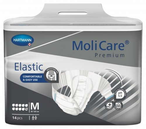 An all-in-one slip style pad for very severe incontinence, suitable for all body shapes. MoliCare Premium Elastic is quick and easy to apply with only 2 elasticated side panels and 2 re-closable tapes.