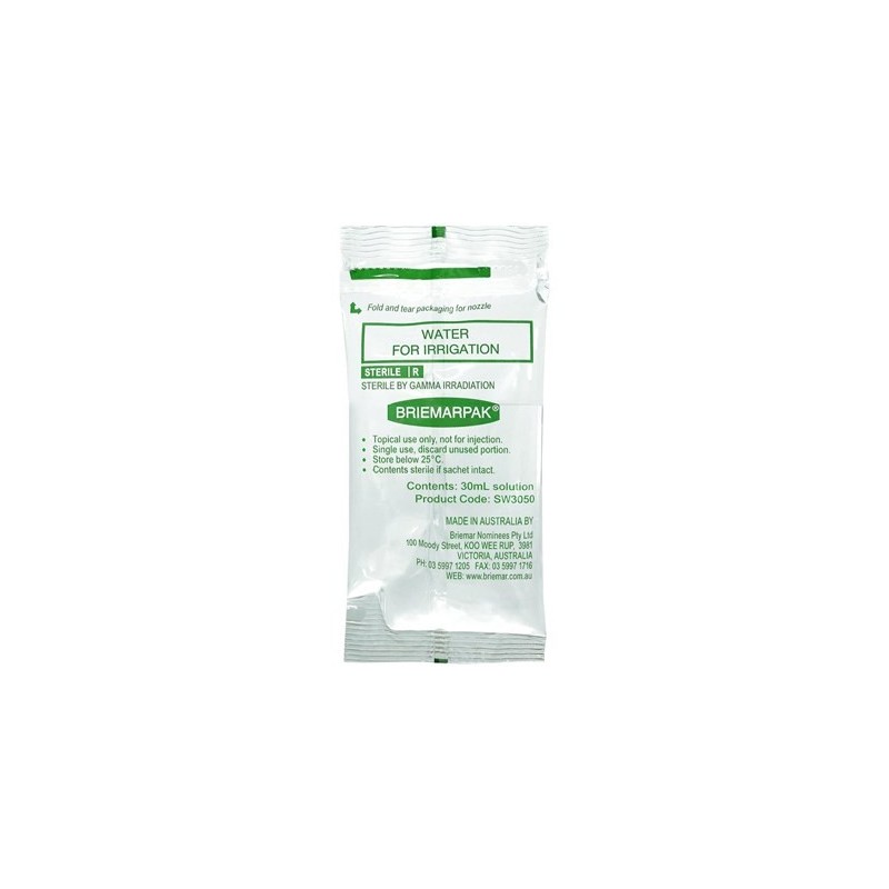 Sterile (gamma irradiated) Water for Irrigation 30mL sachet BOX75