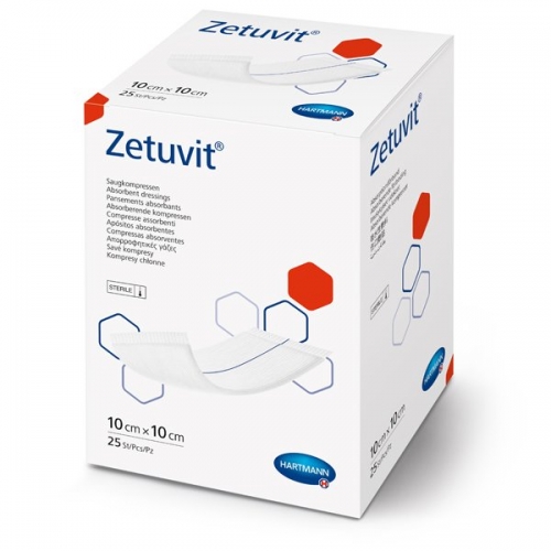 Multi-layered, absorbent dressing pad specifically designed for effective exudate management. Zetuvit® is covered in a soft, non-woven, hydrophobic polyamide fibre. The inner surface of the cover has a high capillary activity, providing wicking of wound exudate into the central core of bleached cellulose fluff.
